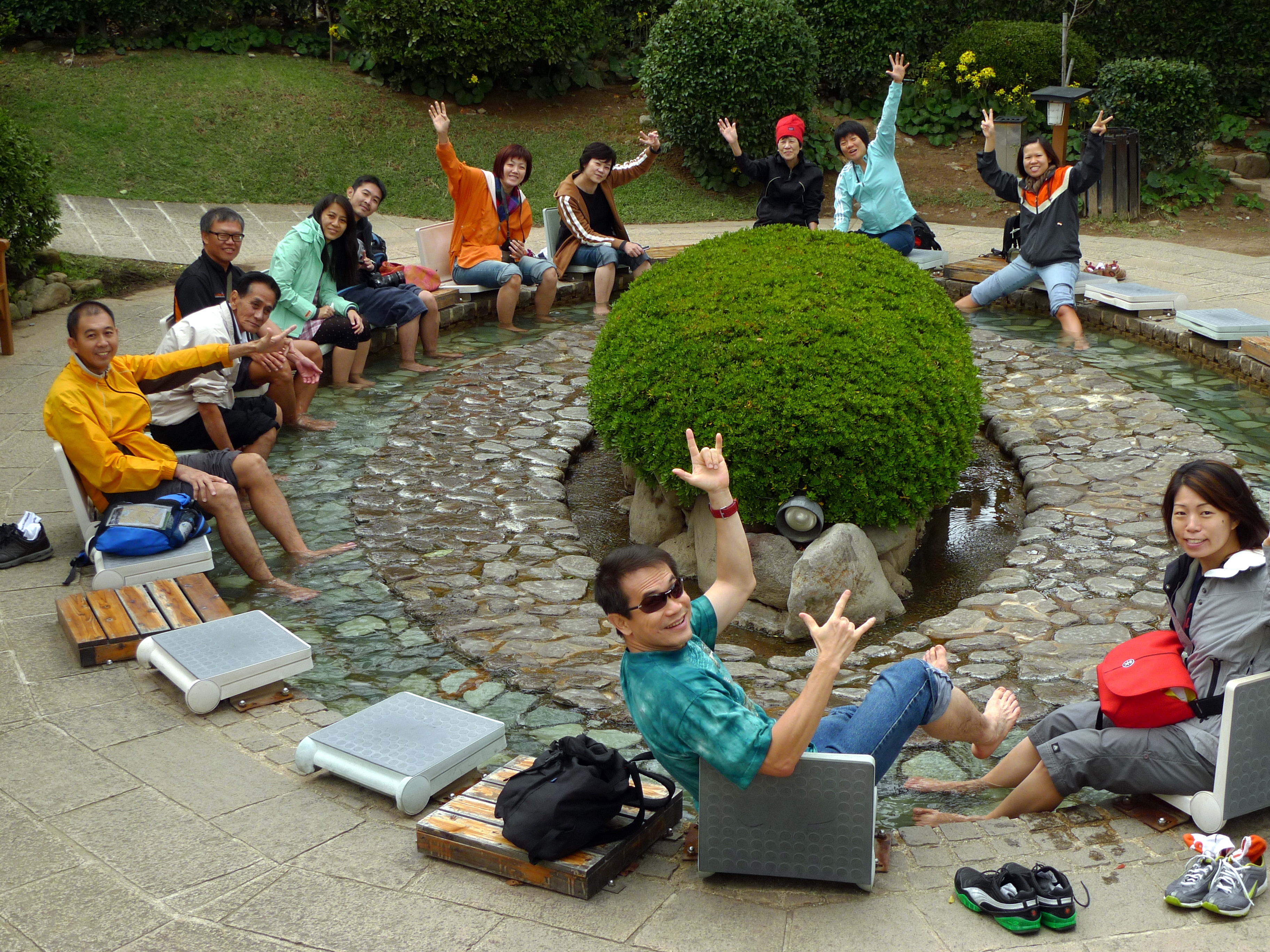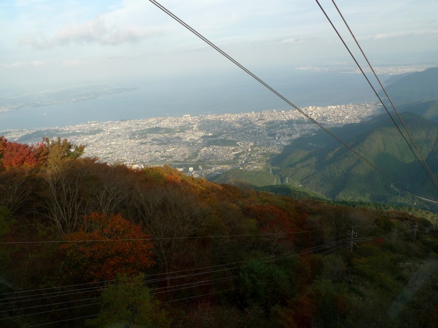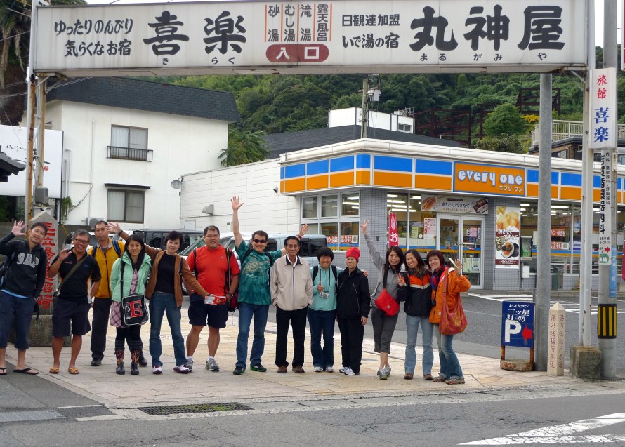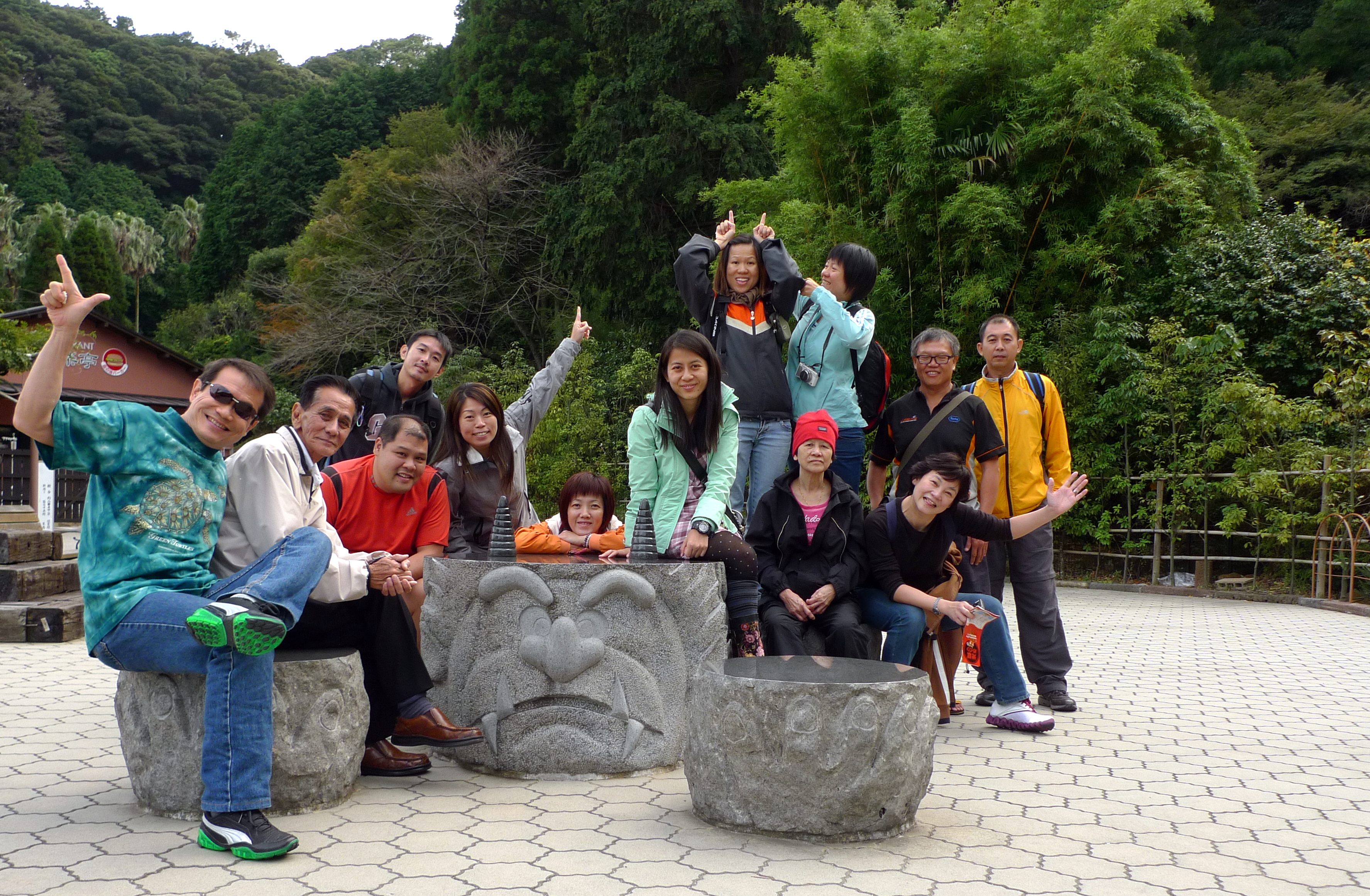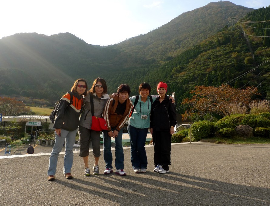 If Beppu was hell, it hadth never looked lovelier. The town was spread out below us. The trees were just turning red. the sea framed the scenery and we even saw a crater lake. At 1,374.5 m tall, Mt Tsurumi would be considered a moderate trek from the base. But in the interest of time, we cheated. Still the last few steps to the summit was no walk in the park. I was panting heavily even before we reached the top (but then i’m not a good benchmark cos the first person to reach the summit was the oldest in our group – Ailengsan’s papa!) And it was windy and chilly up there. I think it was 12 degrees then.