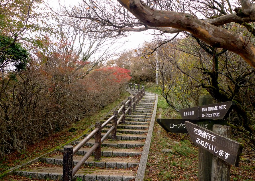 After we evacuated from hell, we took a bus and funicular to the mountains – Mt Tsurumi (鶴見岳). earlier we were worried that the weather would be against us. Fortunately, not.