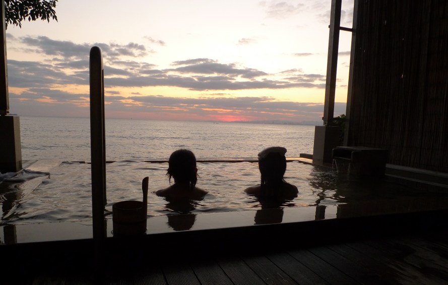 We were expecting to step into a hot furnace but everything looked so .. benign … almost disappointing! har har. Our ryokan 晴海 (Seikai) was a tall, modern building solemnly erect next to the sea, one of the taller buildings around. Many gems were hidden inside. First we were ushered to its reception hall which opened up to a well-tended lawn and the sea. This immediately lifted our spirits. Then we explored the rooms, big, comfortable and all looking out to the sea and came with its own bathtub onsen fronting the sea. There were many baths to choose from some on the ground floor, some on the upper floors, many restaurants (fusion, japanese, chinese) and a smoking room that had an amazing collection of vinyl records (some autographed!). We could easily wallow the whole day (and night) in the hotel.
