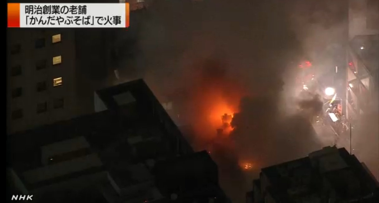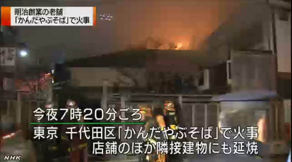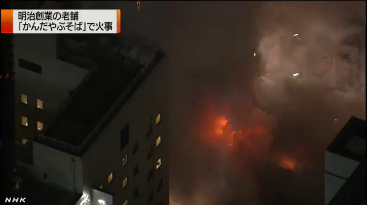 Here are some screen shots from NHK on 19 Feb. Apparently the fire started around 720pm and then spread to 4 other buildings nearby.