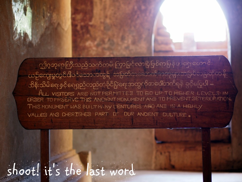 As we move on from Bagan, we overheard some travellers exchanging notes about Stupa # XX @ so-and-so place which had beautiful frescoes and or others bragging about how many they’d covered/discovered (eg 30 in 3 days). Oh! were we too carefree?!?? Most of the time, we didn’t know which Stupa we had  explored until after we returned to the hotel and tallied with our map or hotel staff. And because we didn’t care about what we’d missed, we didn’t miss it or was it the other way round?  All we did was to give each temple it’s due time, and appreciate its unique beauty and serenity. And those that we couldn’t go, well, they were not meant to be. After all  I suppose, in the land of Buddhas, if you leave it in the good hands of fate, fate will always deal you the good hand.
