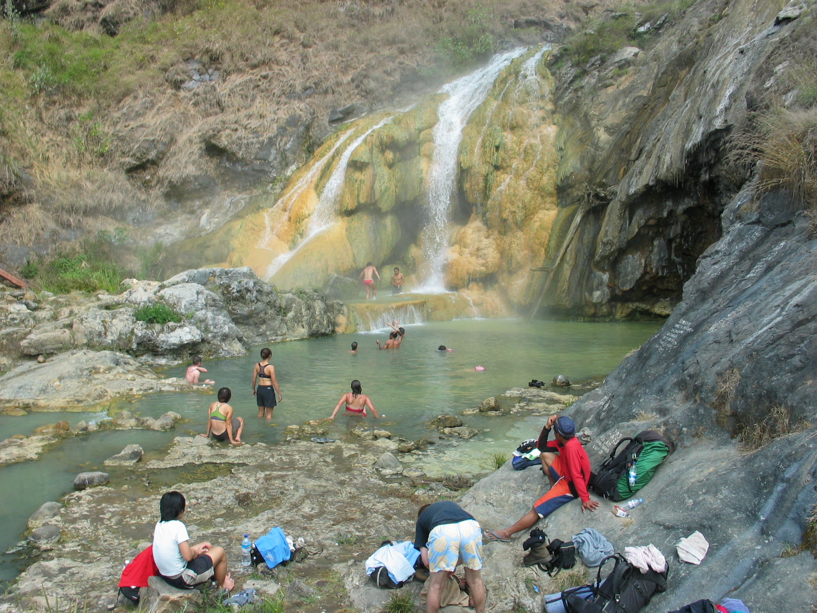 By then, we had crossed into the the arid zone. The vegetation had thinned and the volcanic soil began to show more of itself. When we went around the little hilltop, we saw the emerald green crater lake. From there, we would descend all the way down to the lake itself. It was a steep descend that kept us on our toes and bums very often. But we never lose sight of the beautiful lake.