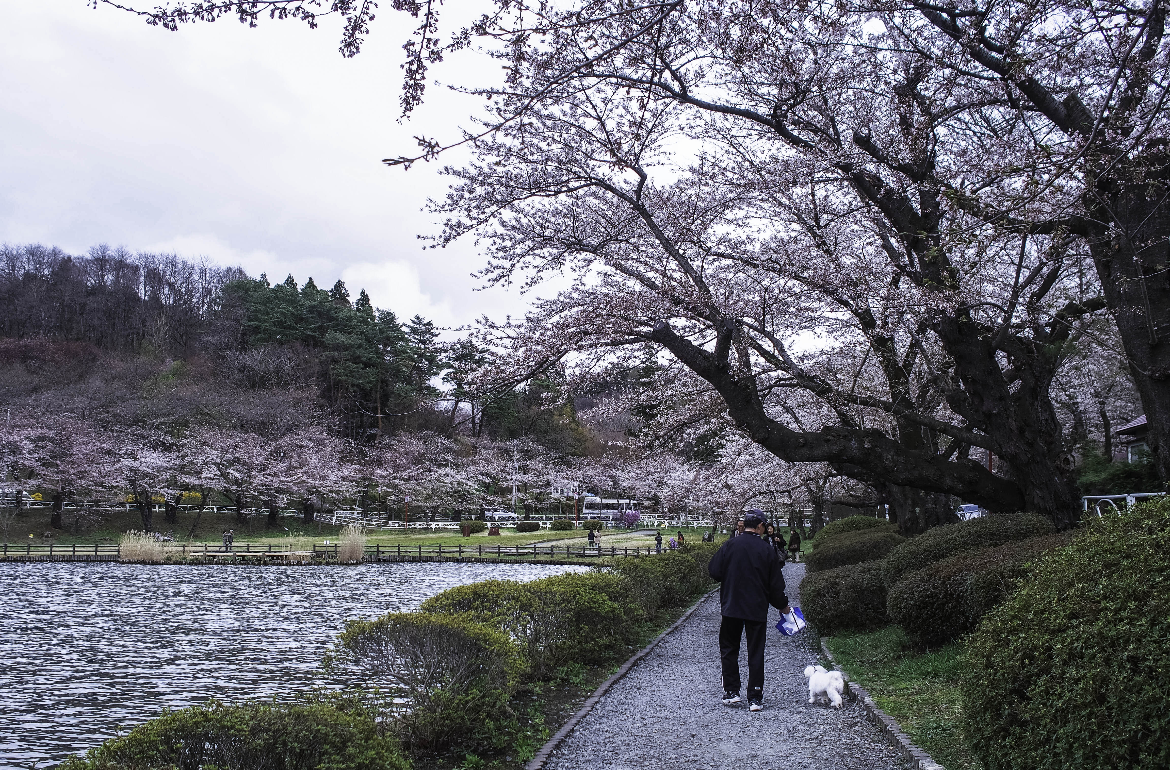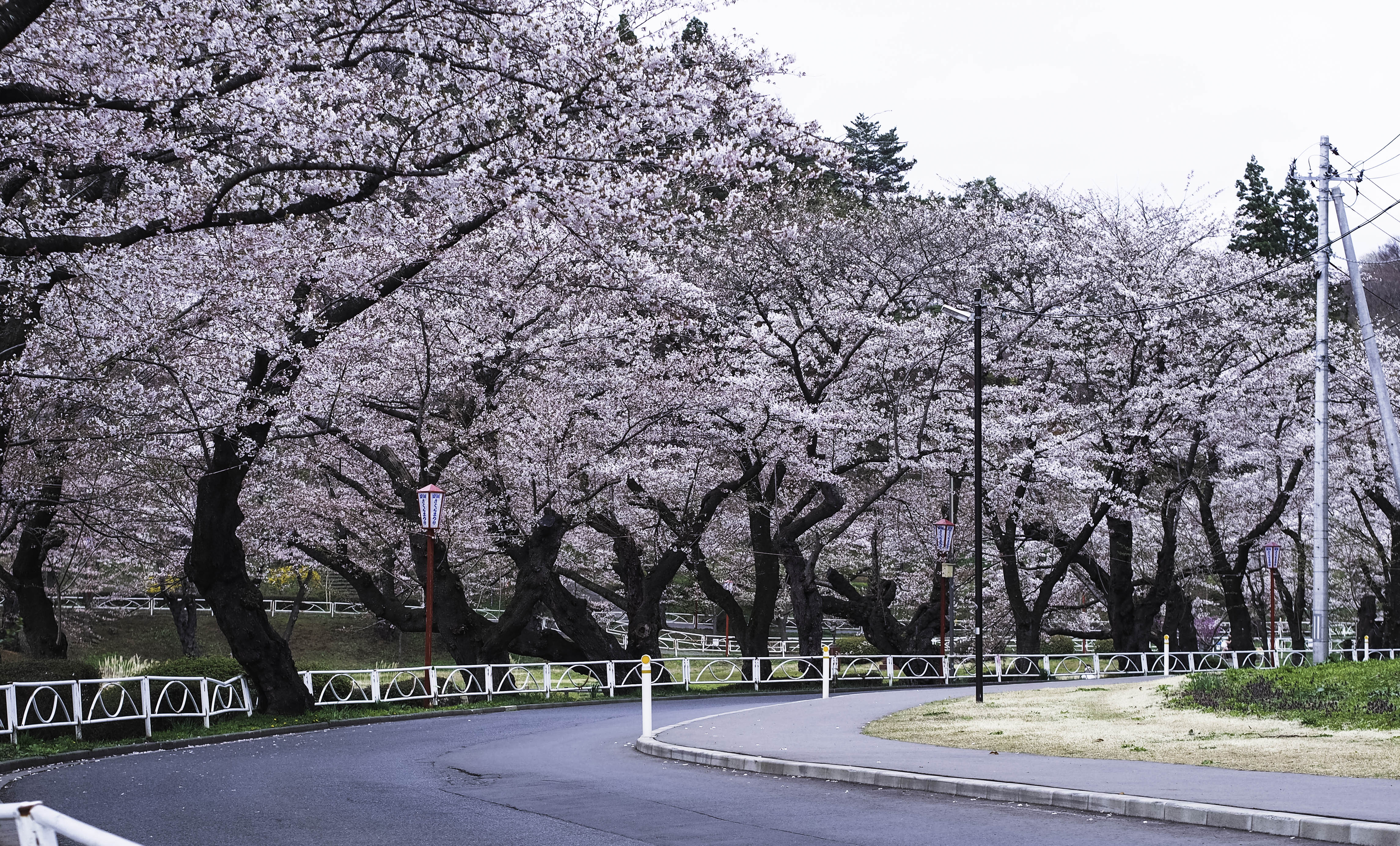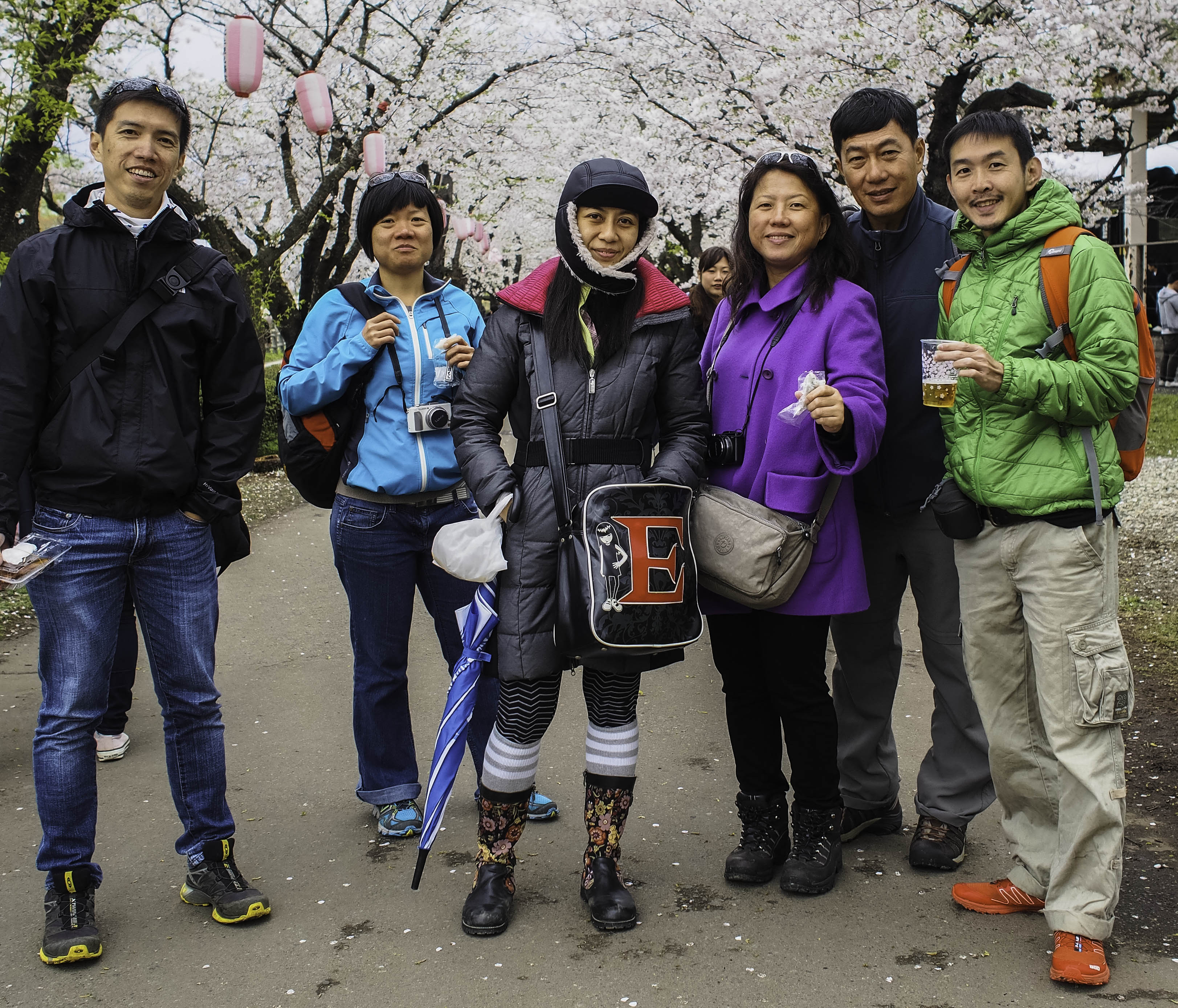Our first stop was the Tensochi park at Kitakami. From the Iwate station, we took a train and then a bus to the park. It was drizzly and overcast but that didn’t deter a single tourist. I can assure you it was very crowded although you don’t see that many people in the photos below. Took me considerable time and skill to manoeuvre to positions where the crowds could be cropped out.