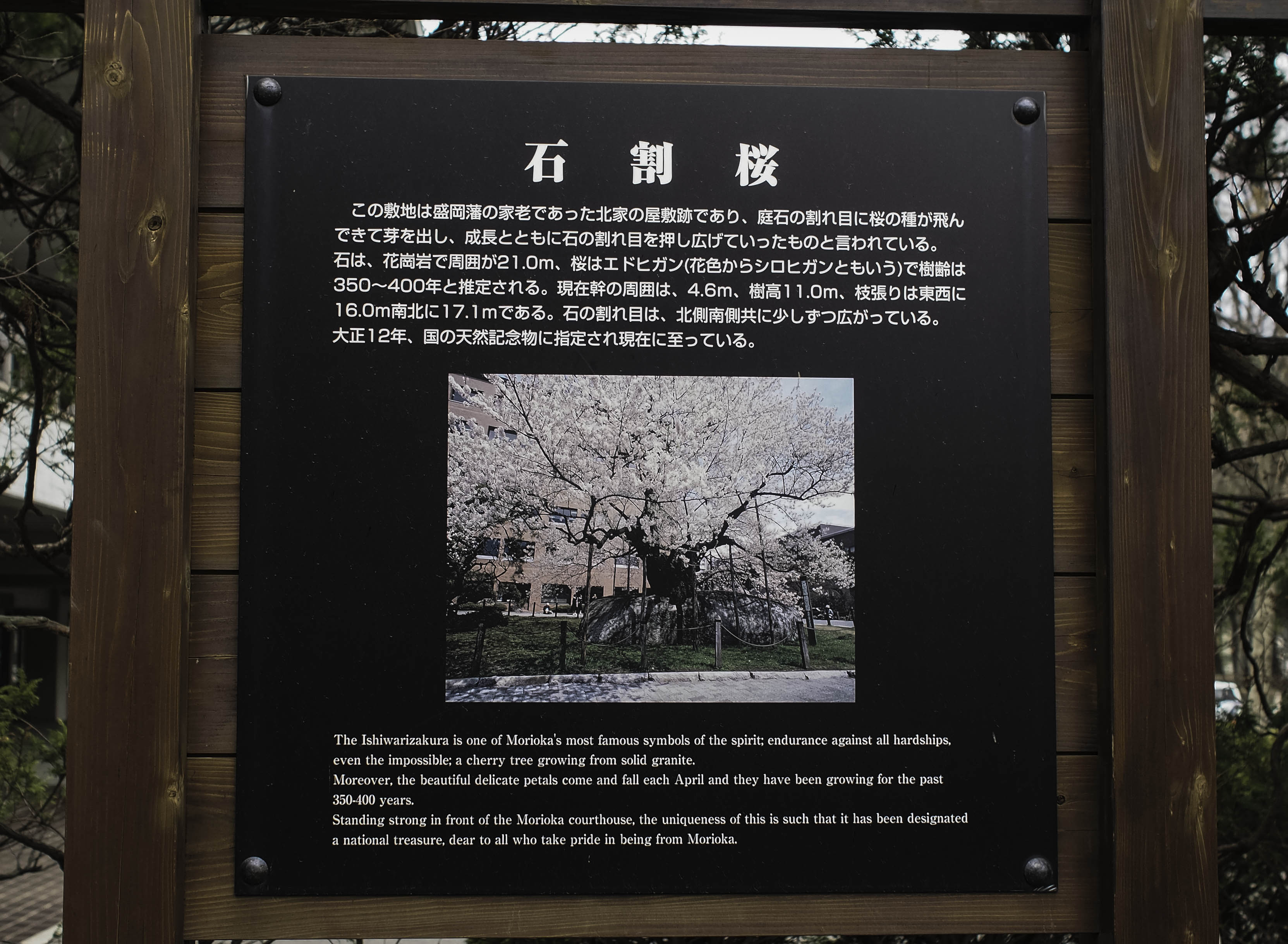 After Kitakami, we moved to Morioka for round 2. Though the Sakura trees were not closely clustered like at the park, they were everywhere in the city. And Mmorioka had something the rest didn’t have. A 400 year old Sakura tree that grew out of a rock and has been designated a national treasure. They call it – Ishiwarizakuara, meaning rock-splitting Sakura. We walked from one of the castle exits to the rock-splitting cherry tree. Not far, took us 15 minutes and we discovered a whole backyard of cherry trees.