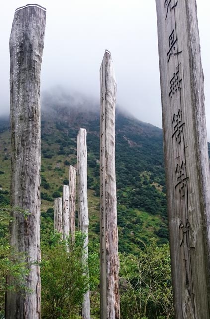 If you are coming from Tung Chung, cross the road to the big stone, the rock with the words Pak Kung Au etched on it. The trail is right next to the rock. A few steps up, you will see checkpoint 18. To reach Ngong Ping, follow the trail till checkpoint 27 which will bring you to the giant sutras that look like columns of an finished building (that’s what I thought when I saw them on my way down from the peak). Here’s the trail map.