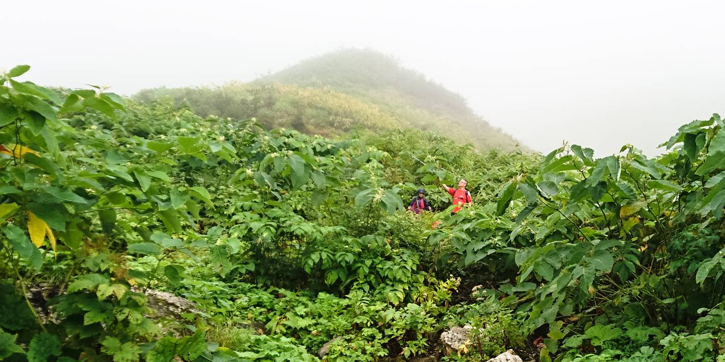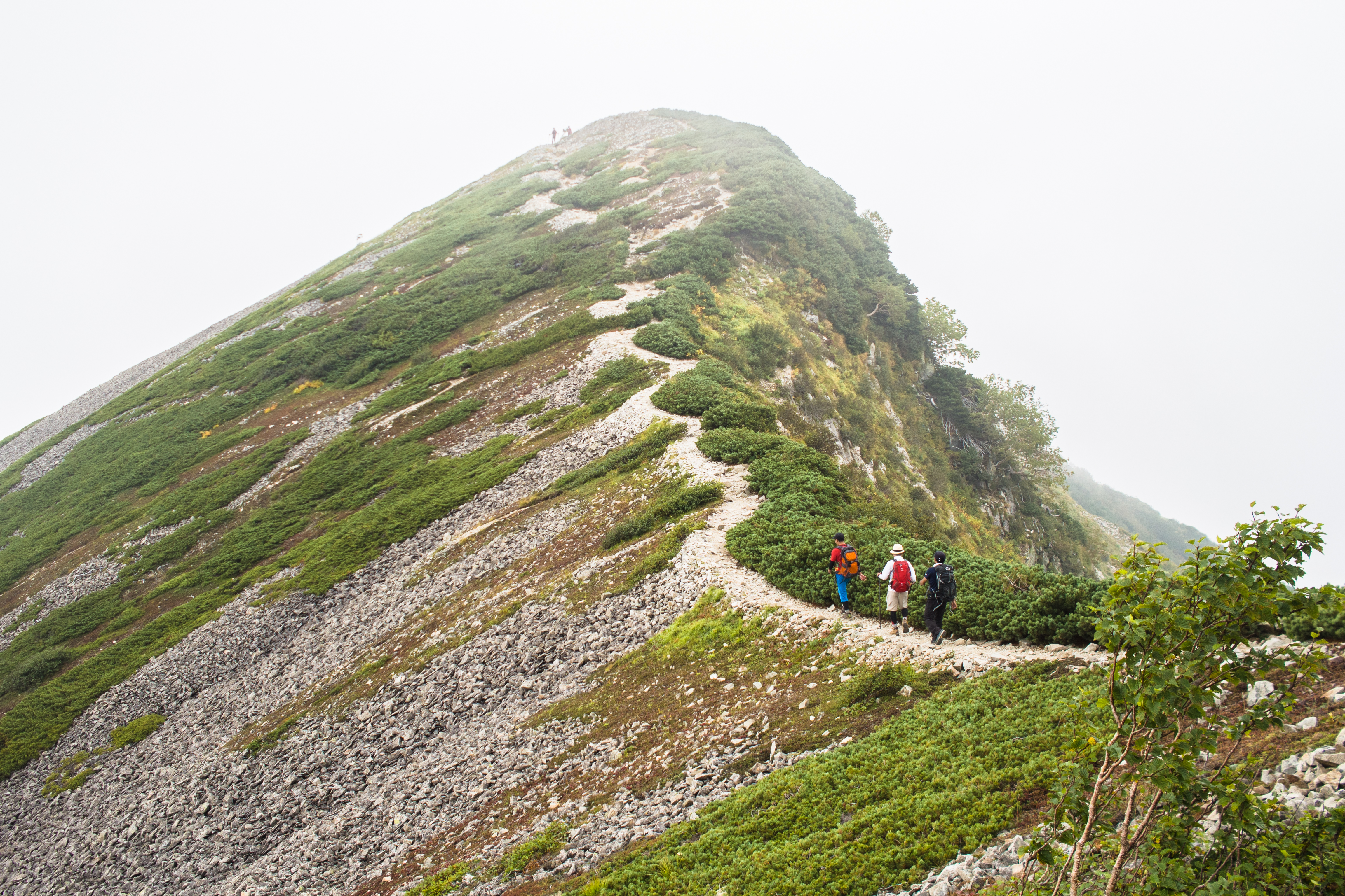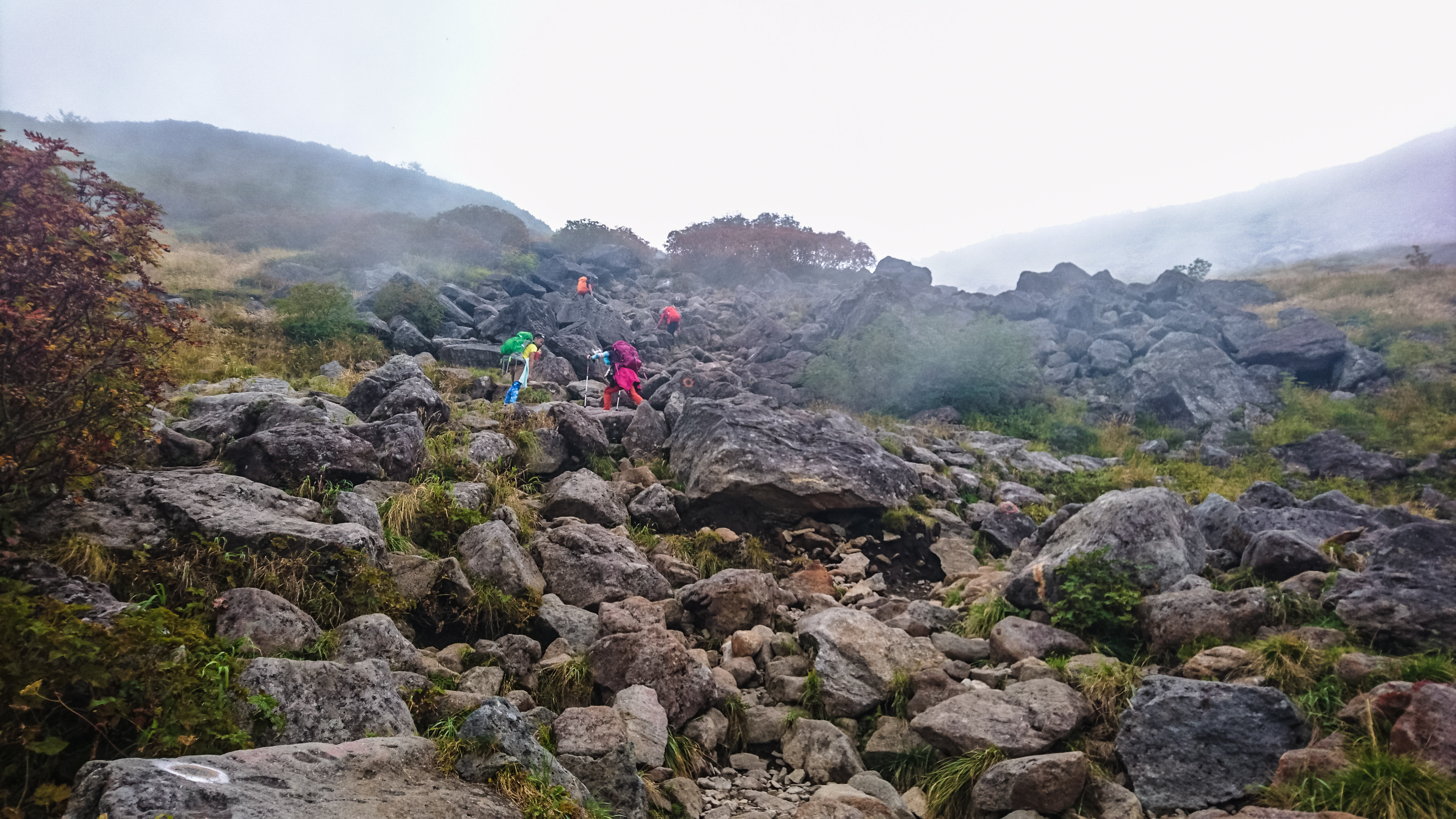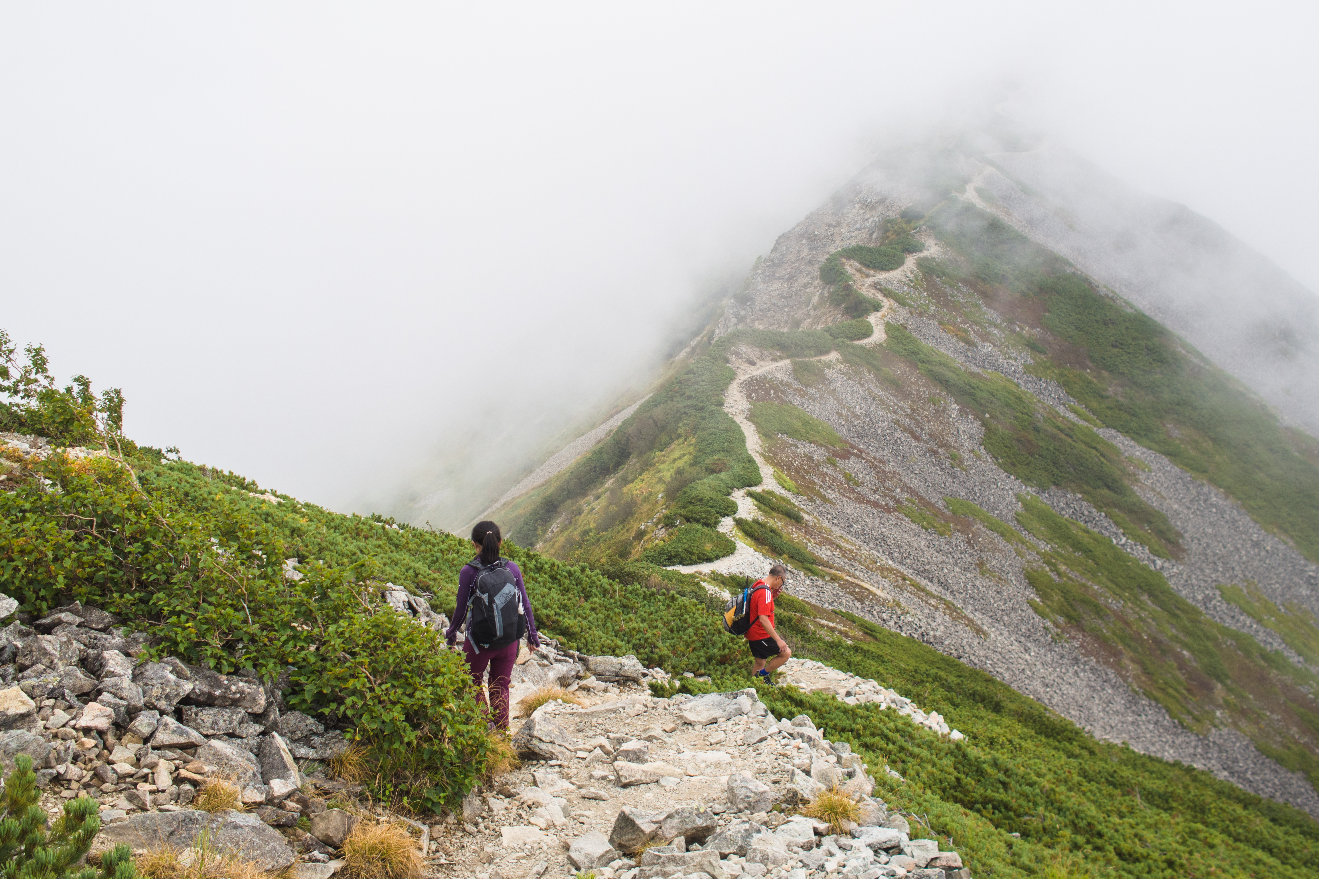 It was the worst, longest, 2 hours of the entire 3-day trek. The rain was bearable but the wind sheared right into the bones (even with heat packs), and there was no where to hide. We didn’t meet a single soul until about 1.5 hours into the trek near Shakushi Dake 杓子岳 (2812m). After that, the wind began to dance even more frenziedly around us and not long after, a group of hikers appeared. They had walked from Tengu Sanso 天狗山荘 – so we were not the only crazy chaps around here.