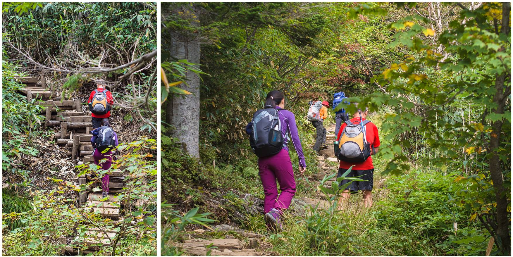 The hike down from Yari Onsen was still marred by rain but no less dramatic. There were lots of green and many waterfalls. the path narrowed considerably at some parts so we had to keep a look out for the trail markers (I went off-course once). As we hiked deeper into the forest, the path became rockier. Rocks are are no good when it rains – they’re slippery and tricky to navigate – so we took longer than the estimated 4 hours.