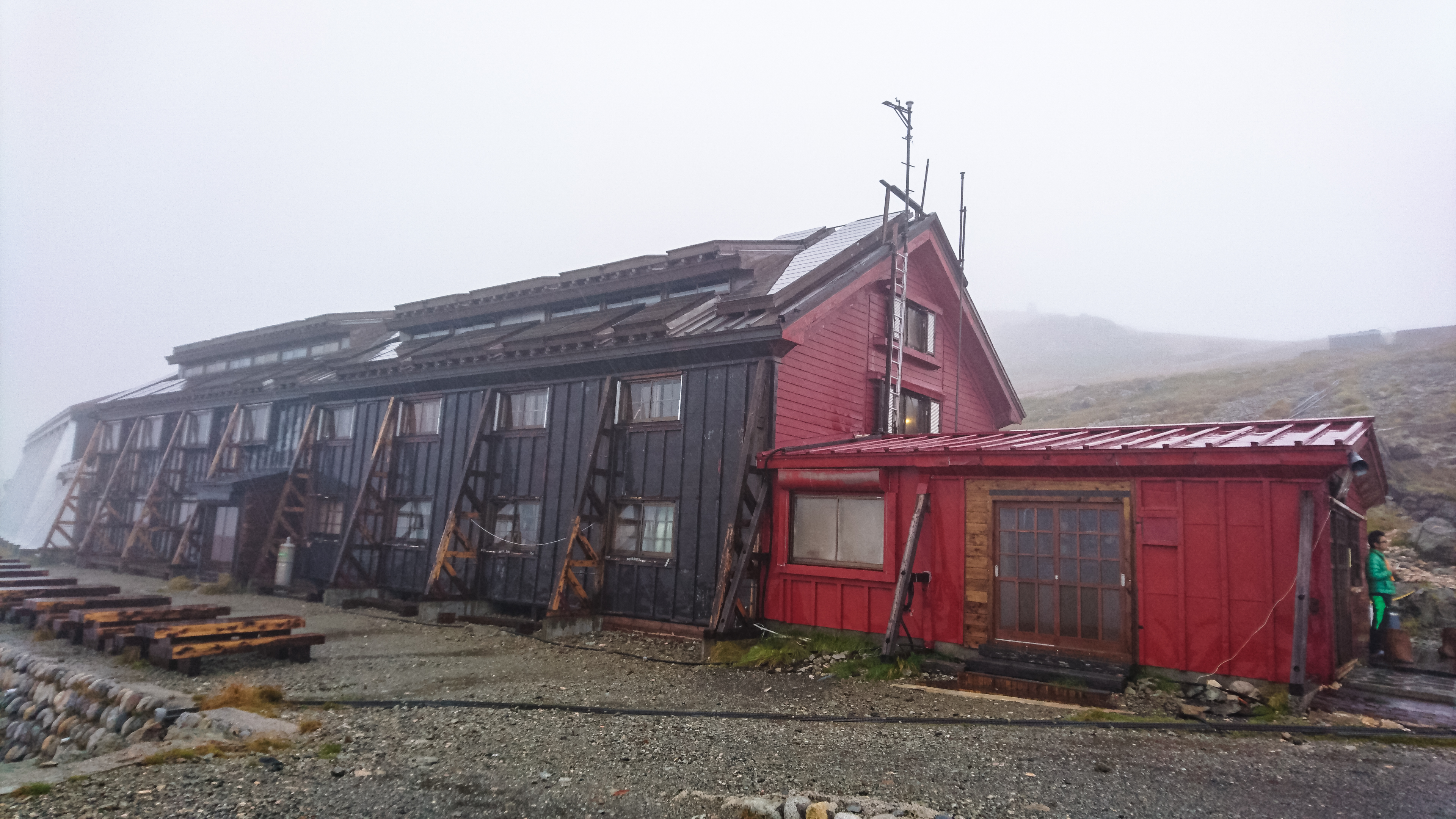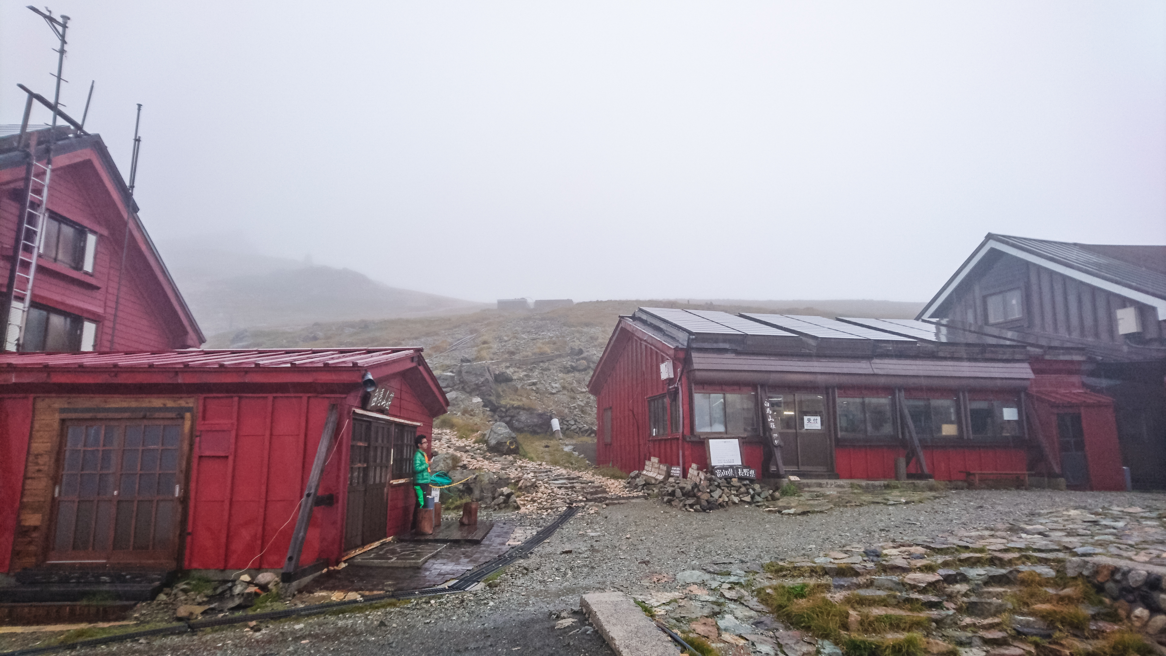 Visibility worsened as we headed down towards Hakuba Sanso 白馬山荘 (2832m). It was pretty dark all around, almost like dusk. For a while, we weren’t sure if we were on the right track because we had walked a long time and still, nothing. When we finally saw the red roofs of the Sanso, we were just 100m from it. Even before we could properly savour our relief, we had already stumbled into the reception hut.