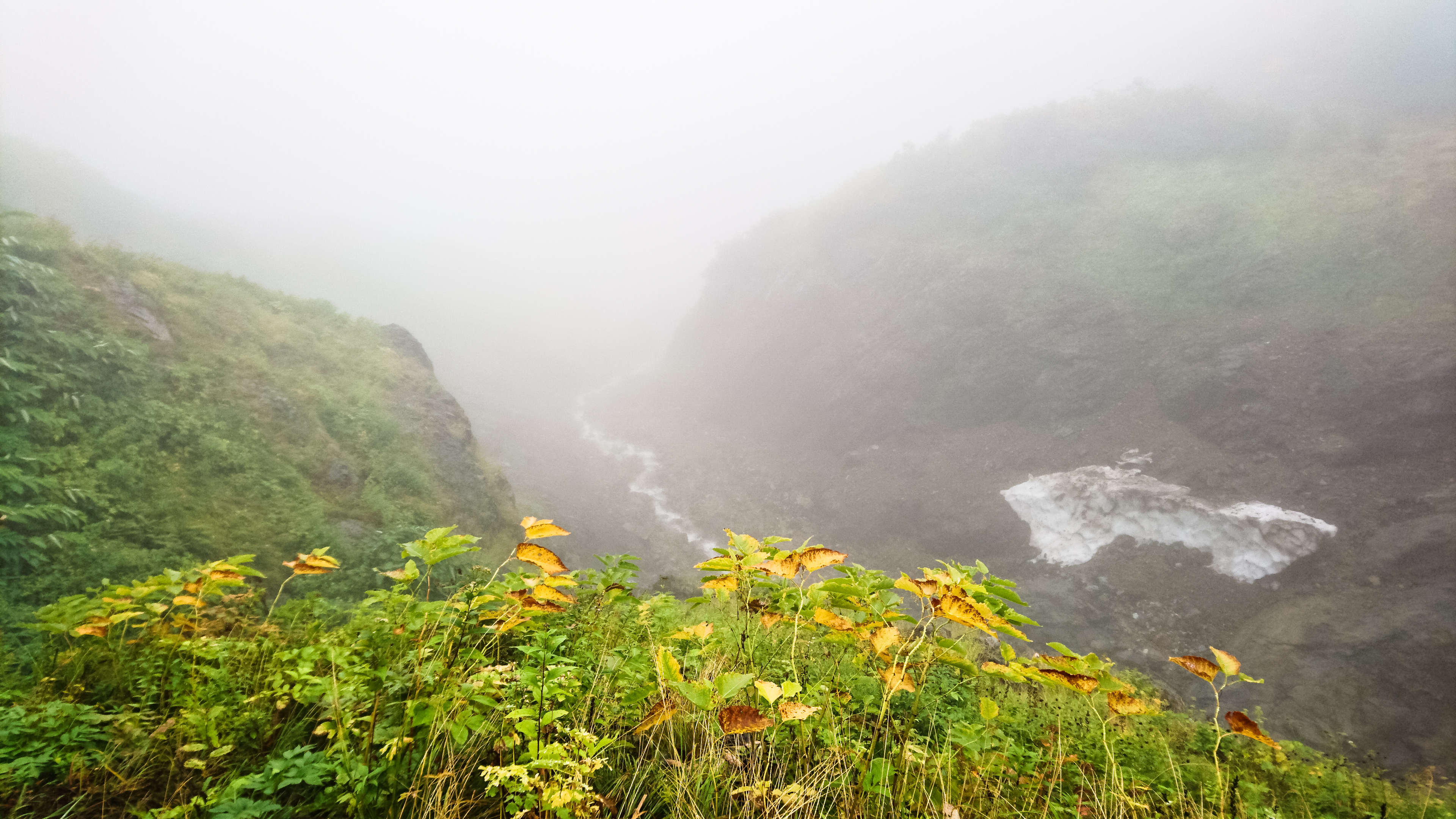 Going down towards Yari Onsen 白馬鑓温泉小屋 (2100m) put us out of reach of the teeth-shattering wind. It was still drizzling but it felt like we had just escaped hell and went to heaven (we noticed the 2 guys had stopped to review and reassemble their garbs).