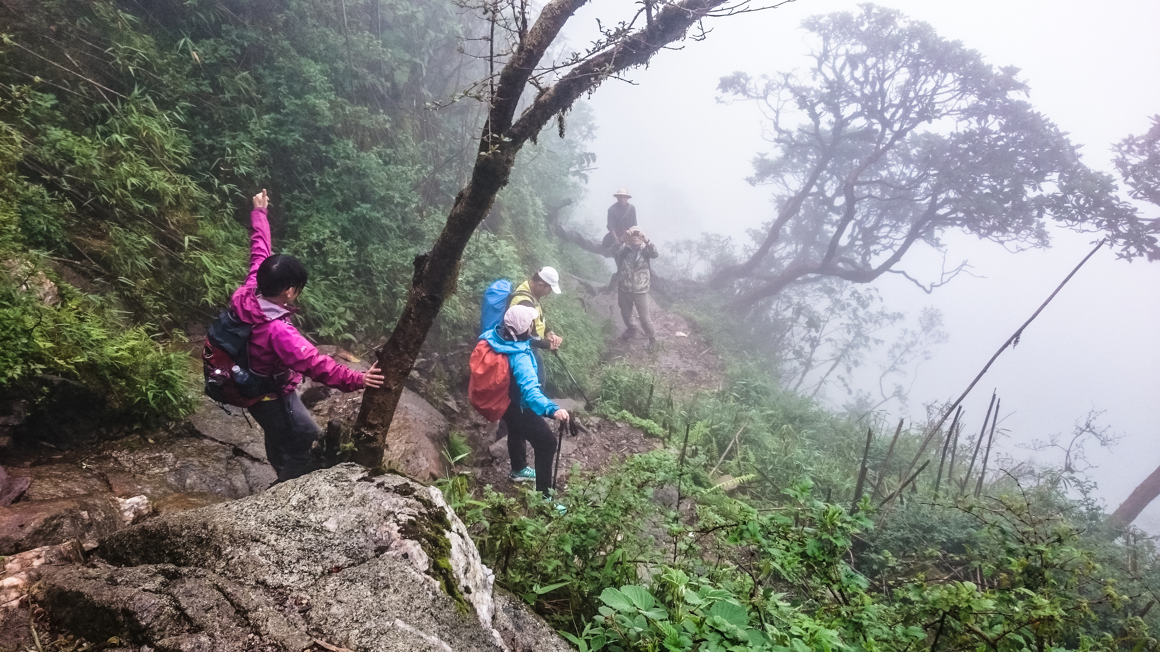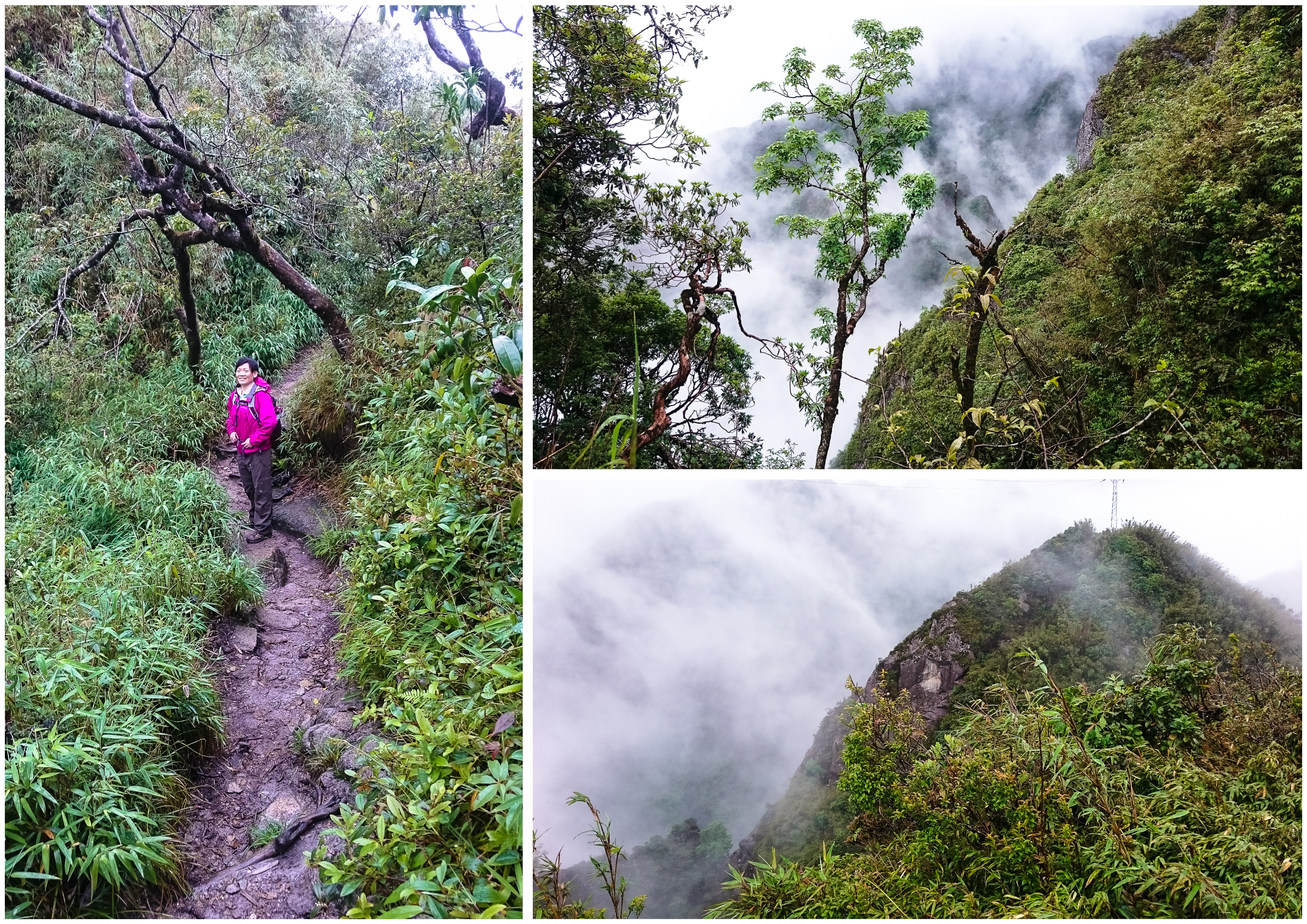 The second half of the day’s trek started innocuously enough. The first hour was an easy gradual ascent but the next 2.5 hours was not pretty. It became impossible to use the umbrella and the camera because some parts were almost vertical, more like rock-climbing. This was immediately followed by a long steep climb that literally ‘took my breath away‘. And those steel ladders that appeared randomly along the trail – they were slippery, wobbly, too long, too narrow, too precariously perched. Yet, cross them we must.