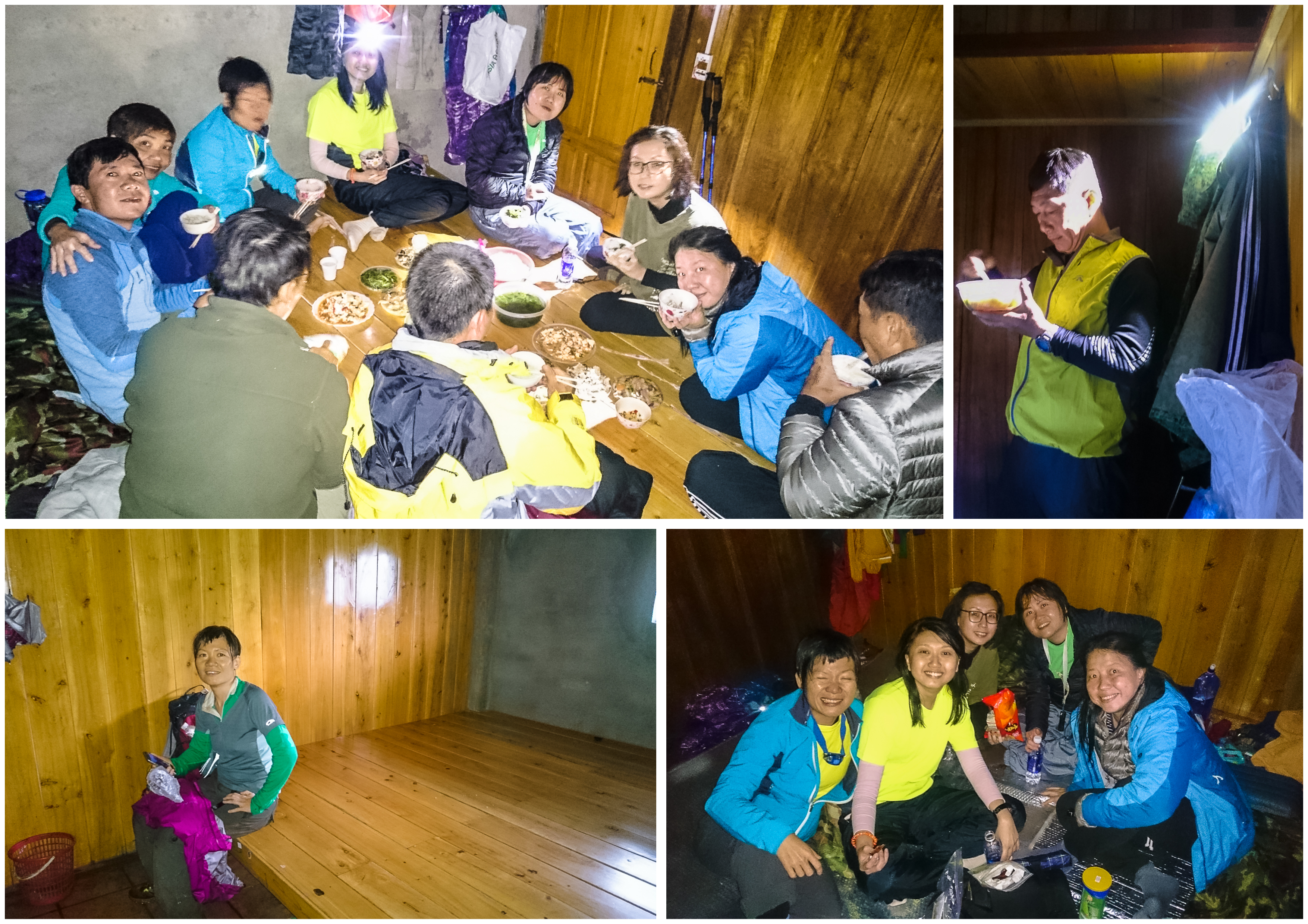 The campsite hut (2800m) was a dismal, dark, damp place with no electricity and no running water. Some rooms were leaking so the early arrivals dutifully examined each room, chose 2 that were relatively dry and settled down for a long, sleepless night. Between 4.30pm to 6pm, everyone arrived, in time for dinner.