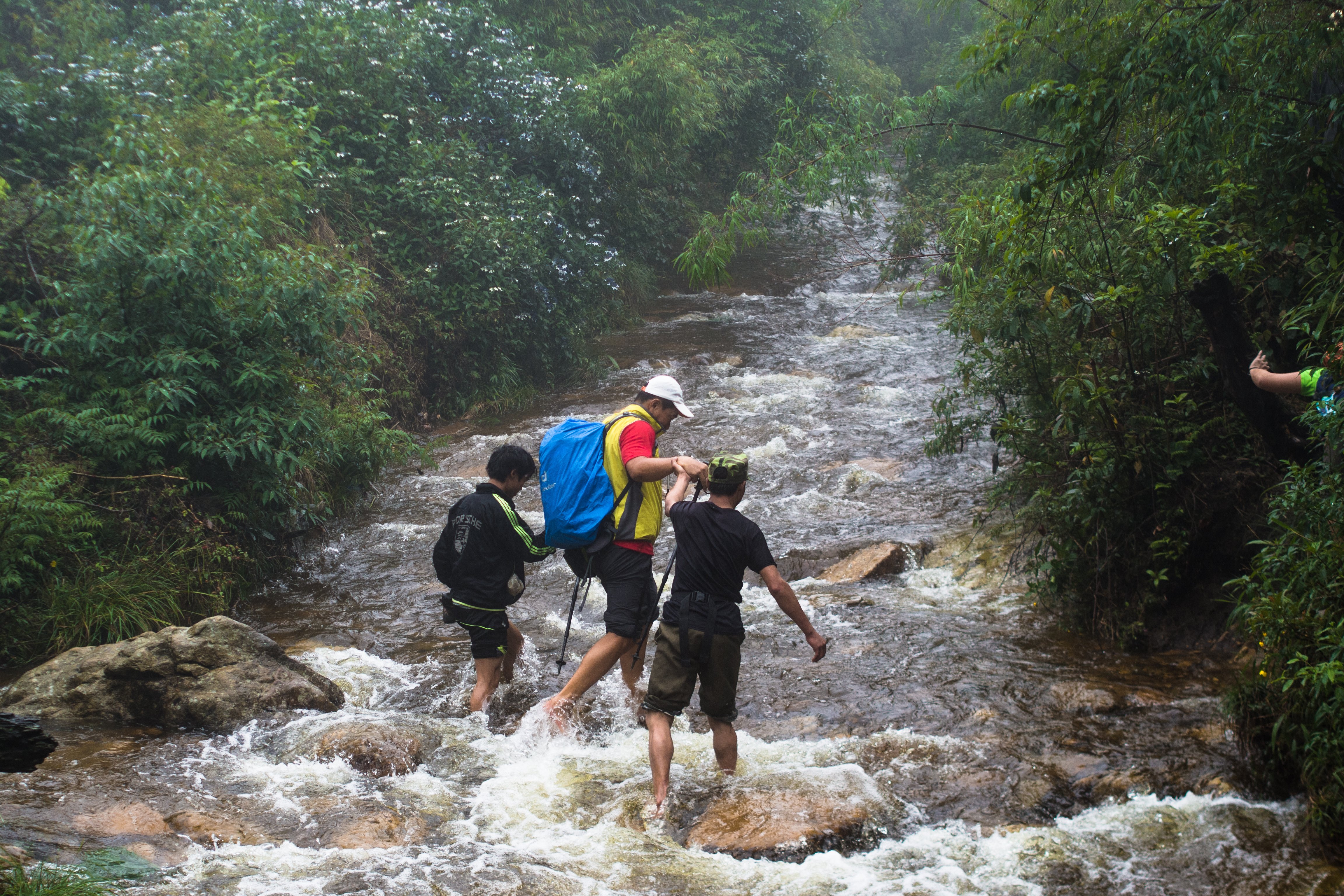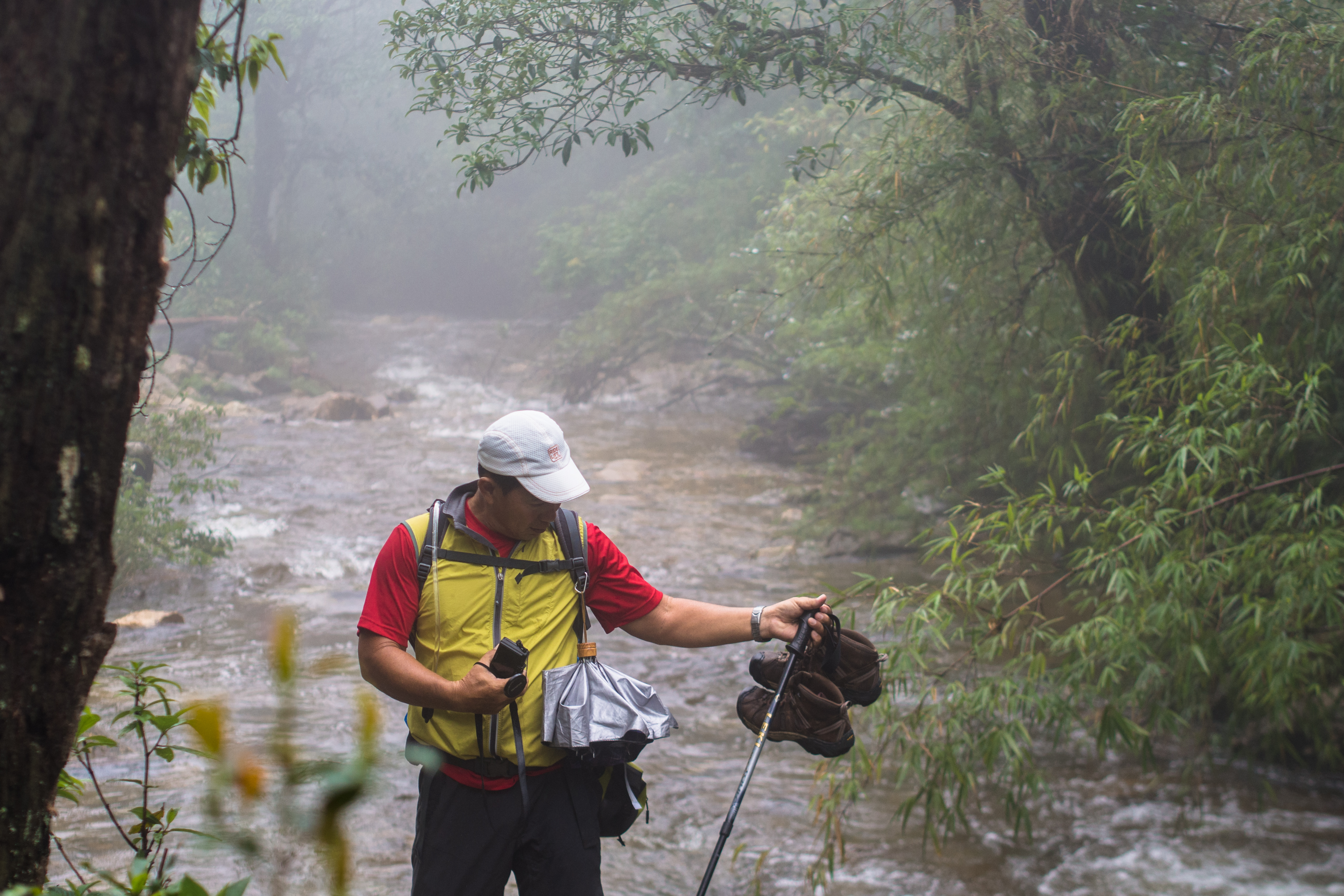 It drizzled intermittently but wasn’t heavy enough for us to whip out our rain gear or umbrellas. We crossed the river 3 times though, quite an unnecessary and dangerous undertaking considering other easier routes were available. I was also uneasy we made the crossings without any safety ropes, over a river that’s swollen with water from heavy rain and prone to flash floods. Then we had to dilly-dally because we were making a fuss about keeping our boots dry – how silly and meaningless in hindsight.