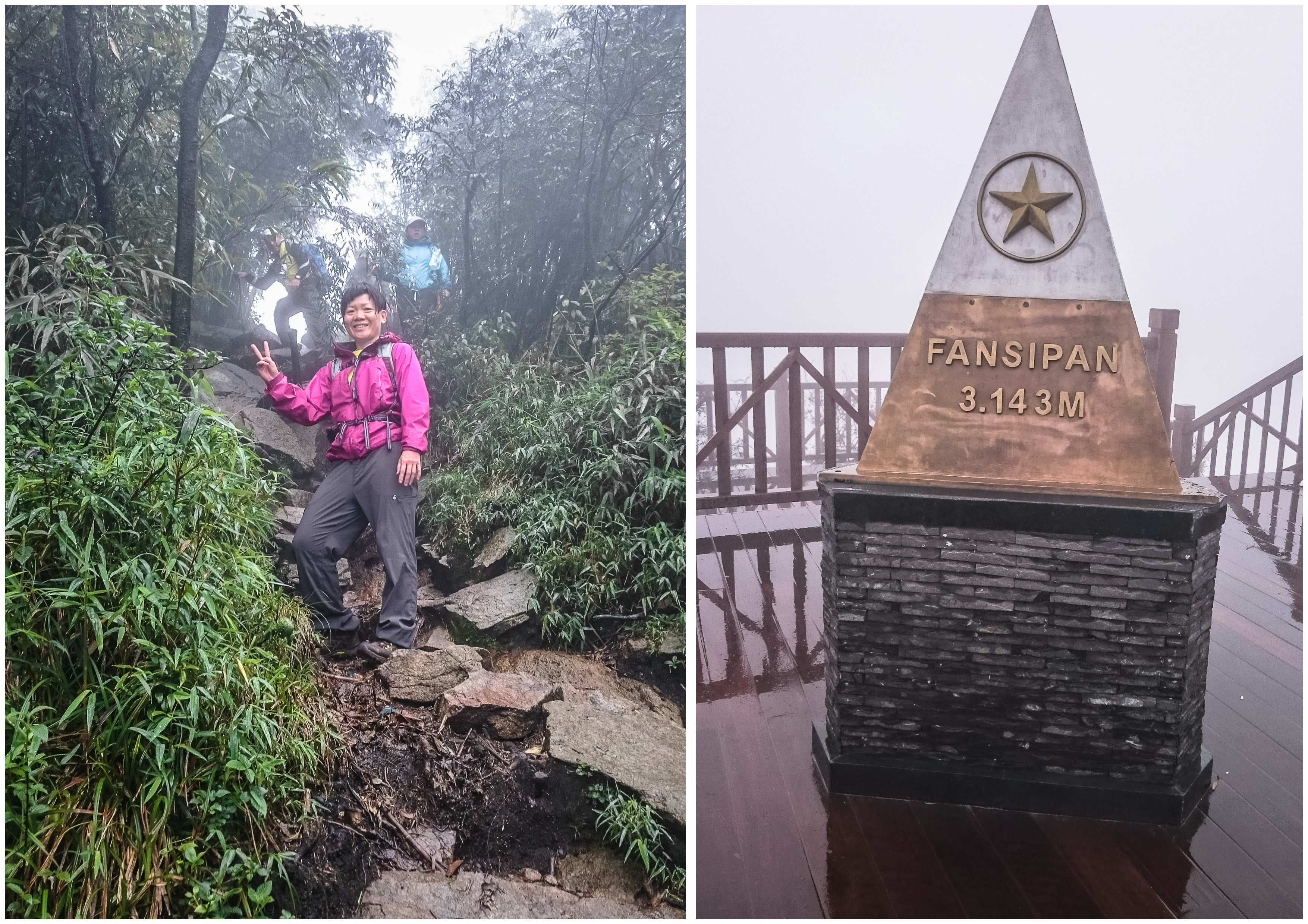 No, that wasn’t the cable car station. That was a construction site below the viewing platform, with workers busy moving rocks and welding stuff. After climbing up the 300+ concrete steps, all we saw was a wooden platform and a triangular stone in the middle, declaring this was the summit of Fansipan (3143m) but no sign of any cable car. Frankly, the cable car would have excited me so much more.