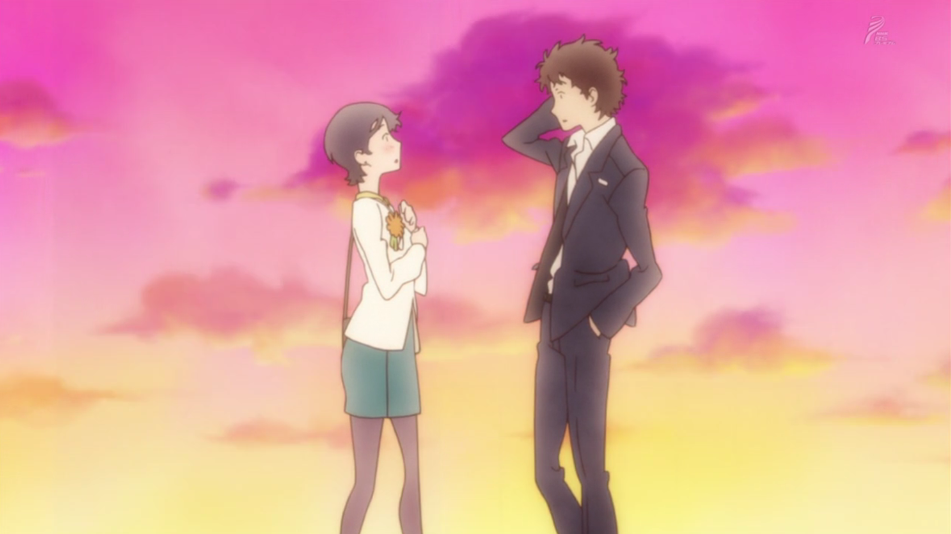 Life’s Best 10 (BONES) was face-paced and entertaining. Yuuge/Dinner (Production Reed) was a monologue with only 2 main characters but one which was interpolated with heartwarming scenes of Mimi-Kou conversations against a colourful palette. Kawamo (The Answer Studio) was more staid, sombre, to reflect the ‘sophisticated OL who has seen the world and is reflecting over her choice. Now, what if one of these 3 did the last story. Would it be any different?