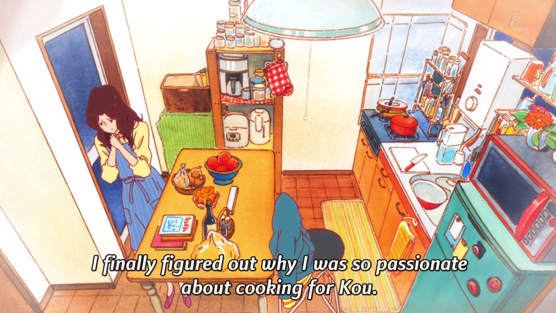 It was a happy ending because Mimi’s husband finally agreed to sign the divorce papers so she could marry Kou. I liked this one mainly because of Kou and how cleverly the story was recounted by the overlaying of animated and real kitchen scenes.