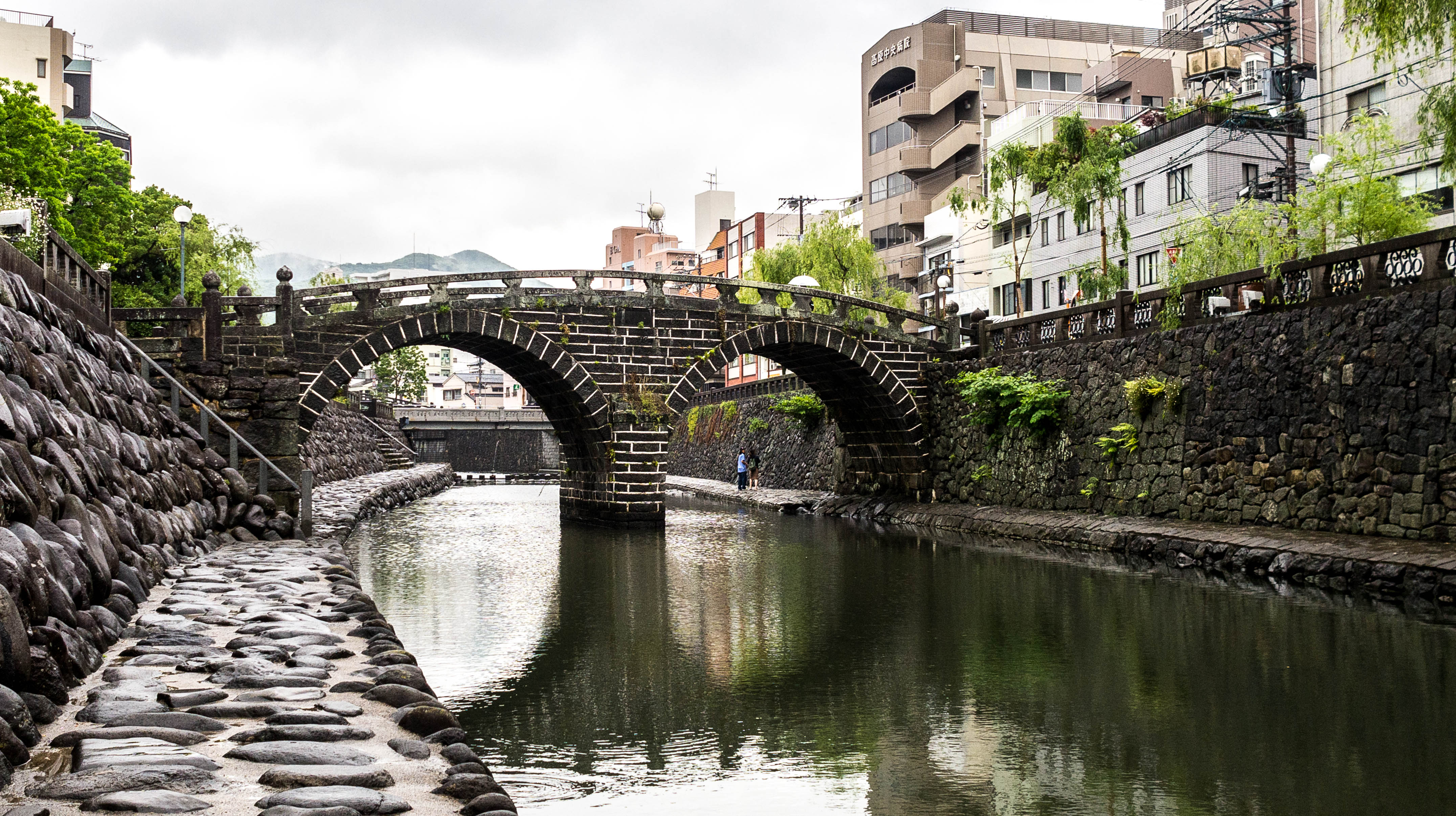 After lunch, walk down Hamano-Machi Arcade 浜町アーケードfor some light shopping then visit the Spectacles Bridge. It may not look like much but it was constructed in 1634 and is the oldest stone arch bridge in Japan.