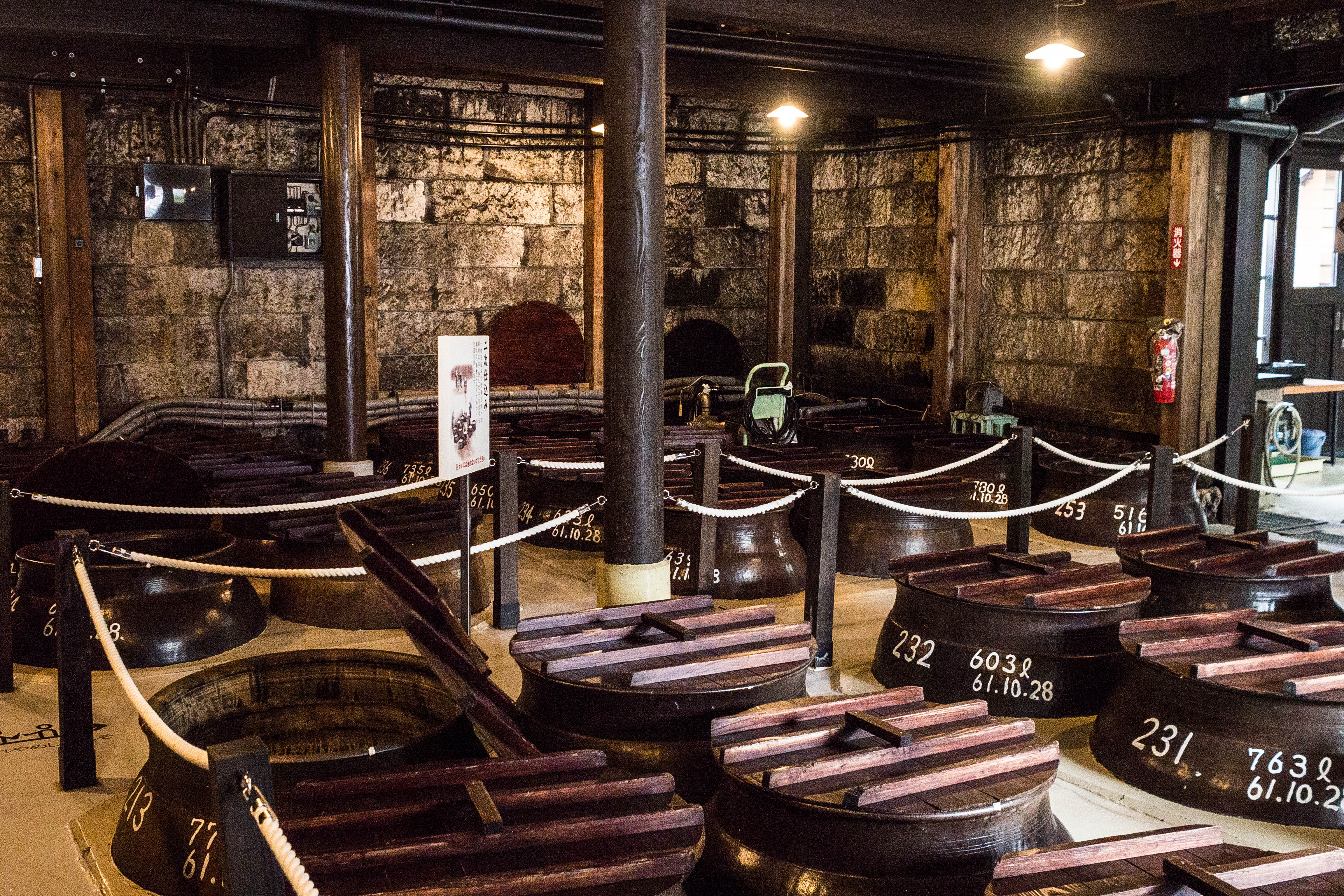 On the first floor, you will see the earthen vats used to ferment the raw ingredients: rice, yeast, water (stage 1); sweet potatoes will be added later (stage 2). The end product is then filtered and distilled using wooden pot stills but nowadays stainless steel pot stills are more common. The alcohol is then collected and left to mature before bottling.