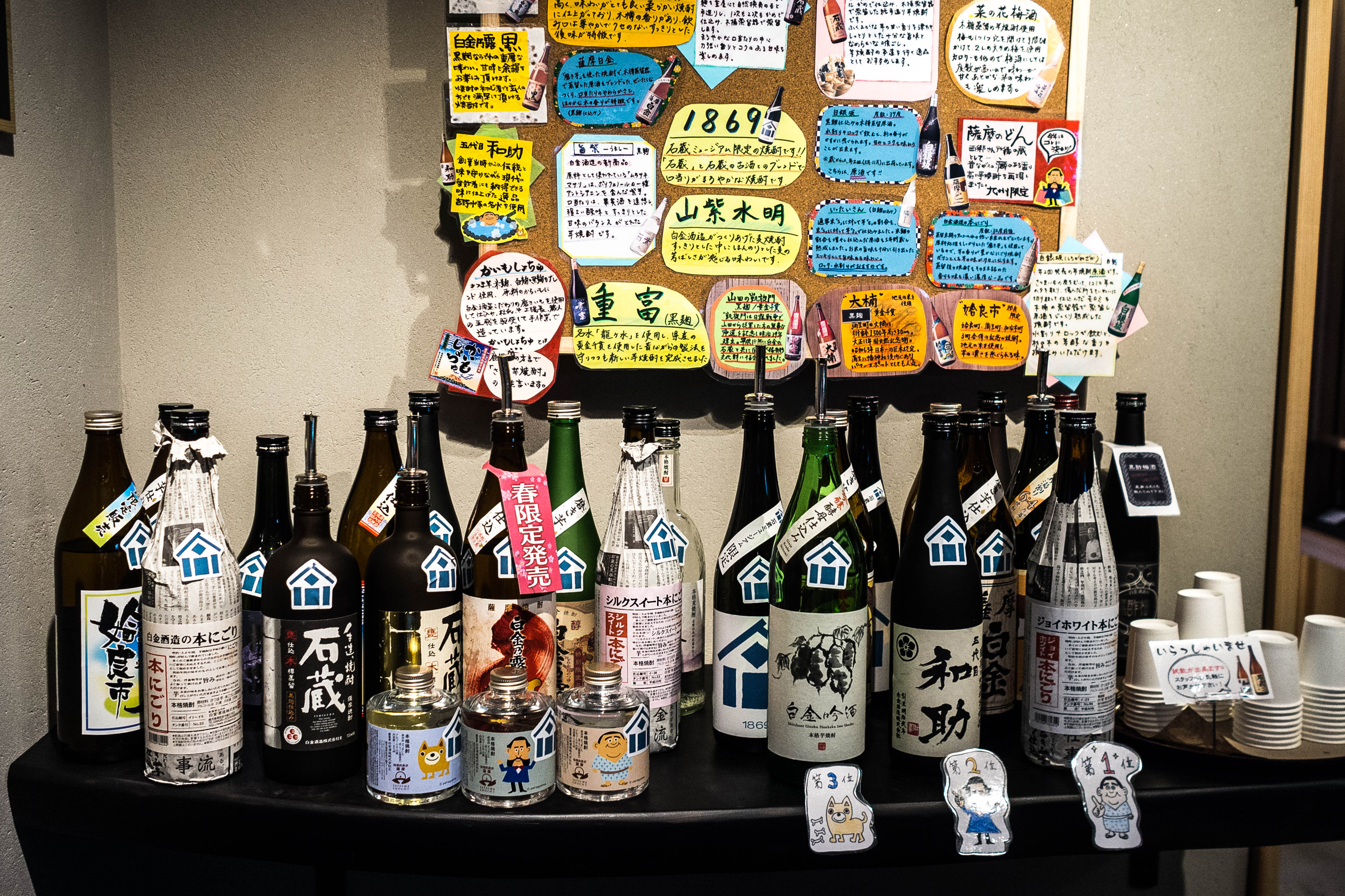 On the second floor, you can sit through a VR video (with headsets), then walk through the exhibits detailing the history of sweet potatoes came to Satsuma and how Shochu developed. Finally, head down to the shop for a free tasting of the top Shochus. There are at least 20 to choose from but always try the good ones first.