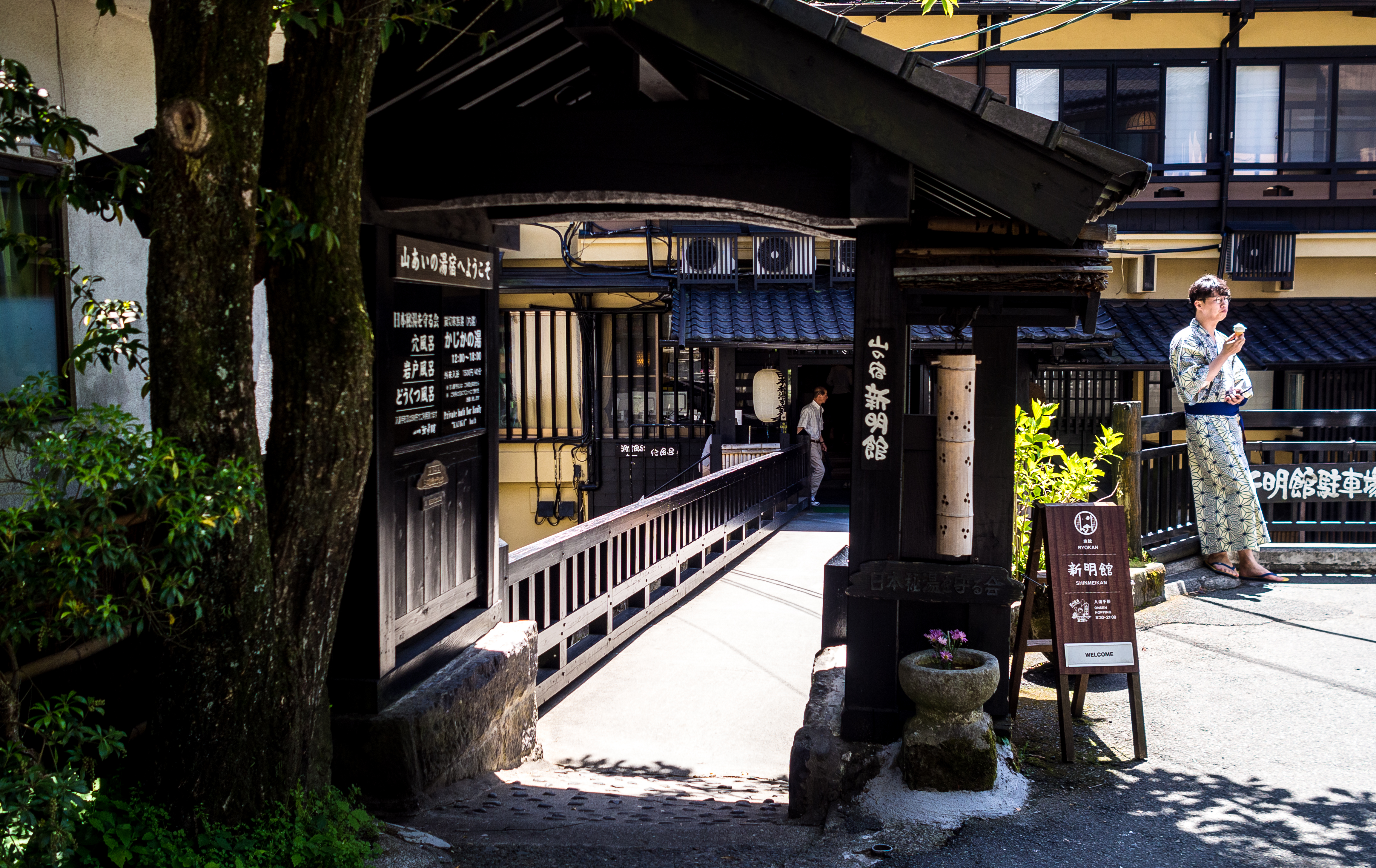 There are 29 ryokans, of which 16 are cloistered within the main village and the rest best accessed by car. The village is perched on a hill which make it fun to explore. It is small so you can finish walking it within an hour, longer if you take your time to shop or eat. The restaurants are generally pretty mediocre (since most guests eat in the ryokans) but the snack shops are great (ice-cream, cakes, matcha).