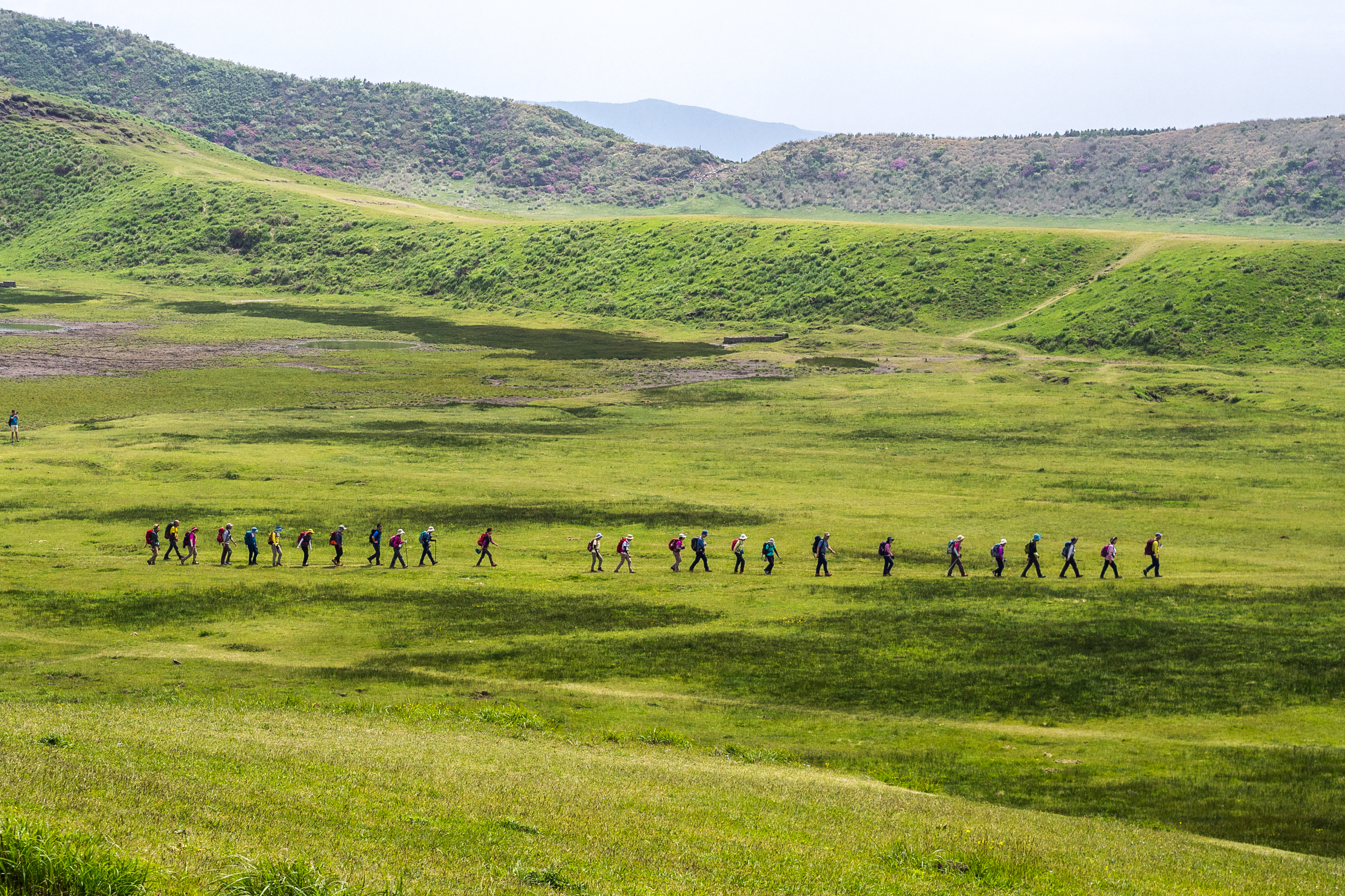 Hiker walking across the Kusasenri plateau
